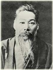 1901(M.34)年[31]……正月、前年の背信事件に対する犬養の配慮により犬養邸にてもたれた同志親睦の酒席で、事情説明と背信者誅伐を迫る内田良平に対し口を噤み、言い合いのすえ内田に食器で額を割られる。『狂人譚』を『二六新報』に連載。浪花節語りになることを決意(乞食芸人と見られるその職業に周囲の大多数は猛反対)。