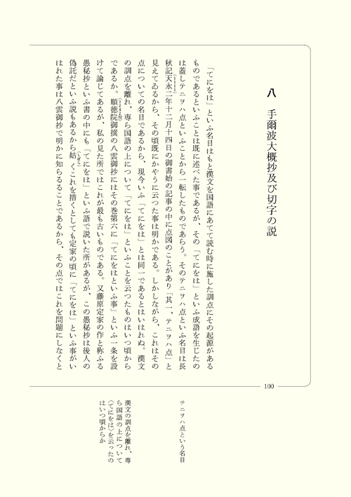 山田孝雄 著 (山田国語学入門選書 2) 国語学史要 「言葉」から掘り起こす日本思想史、山田国語学。 「日本語とは何ものか」をめぐる1500年史の要点。 古代から近代まで、日本語研究の歴史と主要論点・主要学説の流れを一書に示す。 漢文訓読に始まる国語の自覚、あるいは日本語の特性としてのテニヲハの発見。 仮名文字、五十音図、仮名遣い、活用、かかり…… その有機的関係がなす、国語学史という生命。 日本人はいかに日本語を自覚し、日本語となしたのか。 *下段に内容要約見出しを配し、本論の流れを俯瞰する入門書型の組体裁* (シリーズ他巻 山田国語学入門選書 1 『日本文法学要論』 のページへ→) (シリーズ他巻 山田国語学入門選書 3 『日本文字の歴史』 のページへ→) (シリーズ他巻 山田国語学入門選書 4 『敬語法の研究』 のページへ→) |