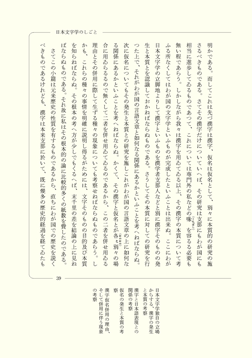 山田孝雄 著 (山田国語学入門選書 3) 日本文字の歴史 漢字+かな表記はなぜ生れたか? なぜ我々はそれを使い続けるのか? 日本人の心性と不可分の書記システムがもつ歴史性とは何か。文法論や文章論からでは分からない、文字づかいから見える日本語の特異相。 「仮名の歴史を論ずる場合に万葉仮名の実体を研究せずしてただちに仮名の論に入るがごときものは、本末を顛倒し、源流を究めずしていたずらに末流に彷徨するものといわねばならぬ」――万葉仮名の革命性を詳説。 *下段に内容要約見出しを配し、本論の流れを俯瞰する入門書型の組体裁* (シリーズ他巻 山田国語学入門選書 1 『日本文法学要論』 のページへ→) (シリーズ他巻 山田国語学入門選書 2 『国語学史要』 のページへ→) (シリーズ他巻 山田国語学入門選書 4 『敬語法の研究』 のページへ→) |